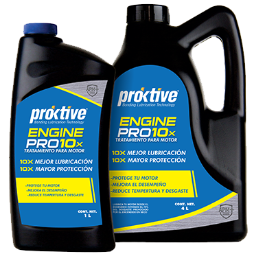 Lo que diferencía a Proktive Engine Pro10X de un lubricante convencional, es que mantiene una película de lubricación siempre presente en los momentos que el motor más lo necesita. Gracias a que está elaborado con la tecnología de lubricación APM+, que adhiere una muy resistente película lubricante a los metales para protegerlos de la fricción y temperatura. La película lubricante de APM+ se adhiere de manera natural a los metales lubricando eficientemente.